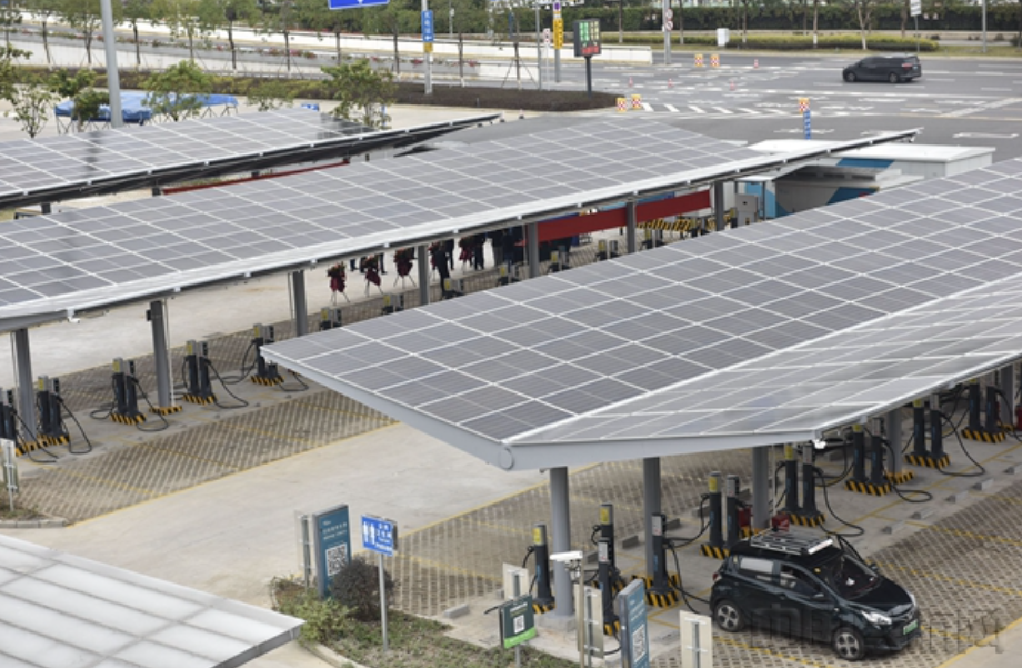 1月28日,廣州白云國(guó)際機(jī)場(chǎng)建設(shè)的首個(gè)“光伏+車(chē)棚”發(fā)電項(xiàng)目在P6停車(chē)場(chǎng)正式投產(chǎn)運(yùn)行。可同時(shí)服務(wù)158臺(tái)車(chē)輛充電,是廣州市最大規(guī)模的公共快充站。