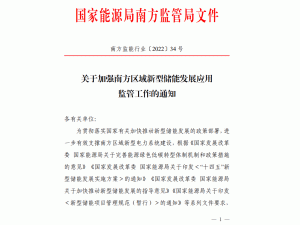 近日,南方能源監(jiān)管局根據國家發(fā)展改革委、國家能源局加快新型儲能發(fā)展應用系列政策部署要求,針對新型儲能發(fā)展規(guī)劃建設、并網調度、市場交易及運行管理等各個工作環(huán)節(jié),全面研究貫徹落實監(jiān)管措施和任務,制定印發(fā)《關于加強南方區(qū)域新型儲能發(fā)展應用監(jiān)管工作的通知》(以下簡稱《通知》)。