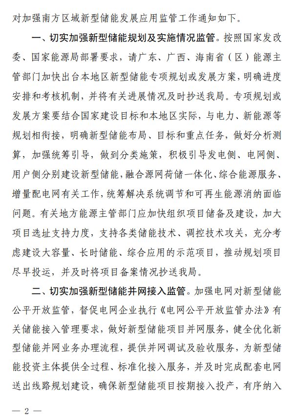 《通知》結合南方區(qū)域實際,對新型儲能規(guī)劃及實施情況、并網接入、市場機制建設、調度運行、安全監(jiān)督管理和信息溝通機制六個方面指導和規(guī)范新型儲能發(fā)展應用監(jiān)管工作,明確關鍵節(jié)點監(jiān)管任務要求,扎實推動國家有關部署要求落地落實,助力推動南方區(qū)域新型電力系統(tǒng)建設。