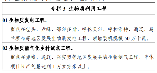 穩(wěn)步推進(jìn)生物質(zhì)發(fā)電優(yōu)化發(fā)展。蒙西以黃河沿線地區(qū)為主,蒙東以呼倫貝爾、通遼、赤峰為主,在農(nóng)林生物質(zhì)資源豐富地區(qū),有序推進(jìn)農(nóng)林生物質(zhì)熱電聯(lián)產(chǎn)項目。結(jié)合城鎮(zhèn)生活垃圾處置需要,圍繞垃圾無害化處理與資源化利用,鼓勵重點城鎮(zhèn)開展垃圾焚燒發(fā)電項目建設(shè)。在畜禽養(yǎng)殖廢棄物資源、城鎮(zhèn)生活污水以及工業(yè)有機(jī)廢水量較大的地區(qū),推進(jìn)大中型沼氣發(fā)電項目建設(shè)。到 2025 年,生物質(zhì)發(fā)電裝機(jī)(含熱電聯(lián)產(chǎn))達(dá)到 60 萬千瓦。