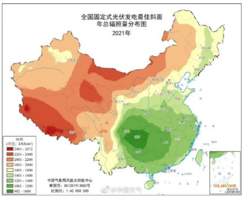 《公報(bào)》指出,2021年,我國東北地區(qū)西部和東北部、華北北部、內(nèi)蒙古中東部、新疆北部和東部、西北地區(qū)西北部、西藏大部、華東東南部沿海等地高空70米風(fēng)力發(fā)電機(jī)常用安裝高度的風(fēng)能資源較好,有利于風(fēng)力發(fā)電。與近10年(2011-2020年)相比,2021年,全國風(fēng)能資源為正常略偏大年景,10米高度年平均風(fēng)速較近10年偏高0.18%。山西、寧夏、內(nèi)蒙古、河南、四川等地70米高度風(fēng)能資源較近10年偏好,上海、貴州、海南、廣東、青海、湖南、北京、甘肅等地風(fēng)能資源較近10年偏差。 2021年我國太陽能資源地區(qū)性差異較大,總體呈現(xiàn)西部地區(qū)大于中東部地區(qū),高原、少雨干燥地區(qū)大,平原、多雨高濕地區(qū)小的特點(diǎn)。2021年全國平均年水平面總輻照量約1493.4千瓦時(shí)/平方米,與近30年(1991-2020年)相比偏低1.69%,較近10年偏低1.28%,較2020年偏低2.61%。全國平均光伏發(fā)電年最佳斜面總輻照量約1748.7千瓦時(shí)/平方米,較近30年偏低1.11%,較近10年偏低0.74%,較2020年偏低2.9%。據(jù)悉,中國氣象局緊密圍繞國家重大需求,積極落實(shí)國家應(yīng)對氣候變化總體部署,加快推動能源氣象服務(wù)體系建設(shè),支撐能源綠色低碳轉(zhuǎn)型,于2021年組建了中國氣象局風(fēng)能太陽能中心。