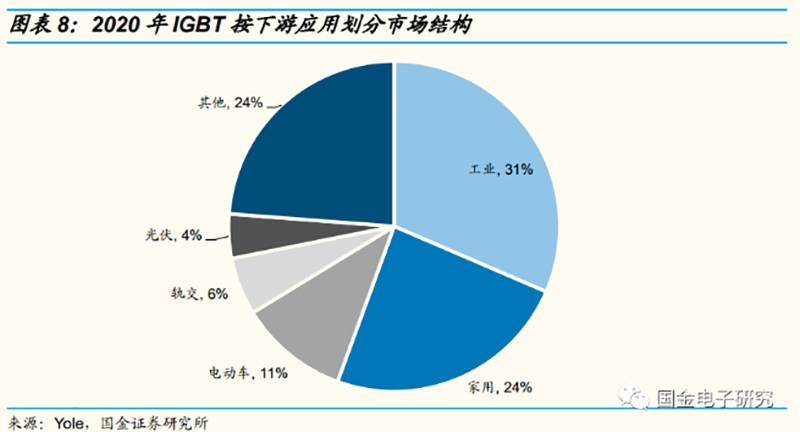IGBT被稱為電力電子行業(yè)“CPU”。作為一種新型功率半導(dǎo)體器件,其是國(guó)際上公認(rèn)的電力電子技術(shù)第三次革命最具代表性的產(chǎn)品,作用是調(diào)節(jié)電路中的電壓、電流、頻率、相位等,以實(shí)現(xiàn)精準(zhǔn)調(diào)控,廣泛應(yīng)用于新能源車、光伏、家電、工業(yè)、軌交、智能電網(wǎng)等領(lǐng)域。