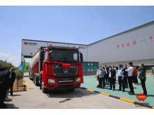 圖為換電重卡更換電池完畢駛出換電站圖為換電重卡更換電池完畢駛出換電站
