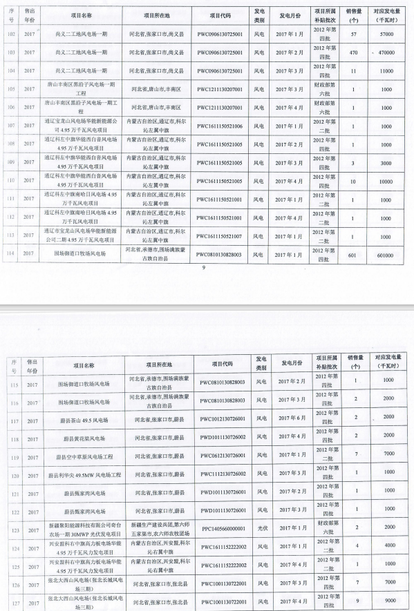 公示如有異議的項(xiàng)目,請(qǐng)聯(lián)系國家可再生能源信息管理中心核實(shí)修改;公示未提出異議的項(xiàng)目,公司將據(jù)此對(duì)所列項(xiàng)目涉及的已出售綠證對(duì)應(yīng)電量進(jìn)行核減。