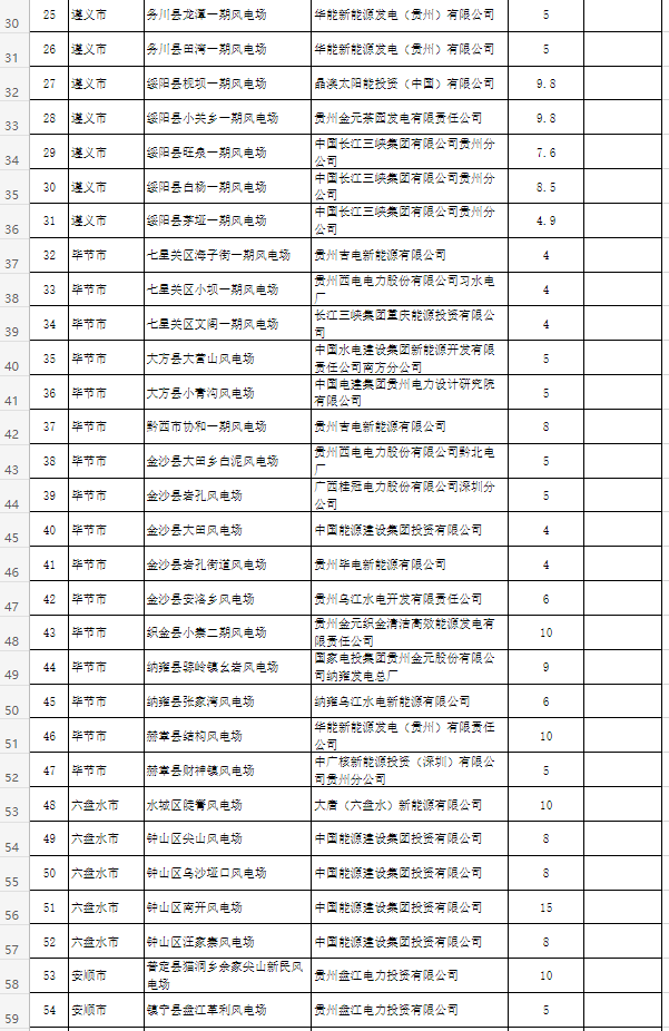 貴州省2022年風(fēng)電光伏發(fā)電年度建設(shè)規(guī)模項(xiàng)目表如下: