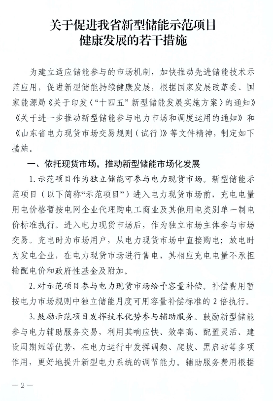 8月31日,山東省發(fā)改委、山東省能源局、國家能源局山東監(jiān)管辦公室聯(lián)合印發(fā)《關(guān)于促進我省新型儲能示范項目健康發(fā)展的若干措施》的通知,通知指出,新型儲能示范項目要依托現(xiàn)貨市場,推動市場化發(fā)展。