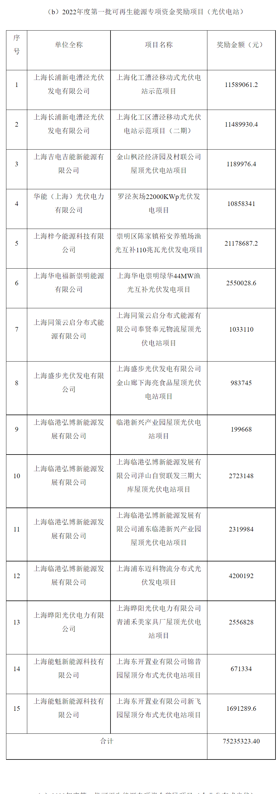 上海市2022年度第一批可再生能源專項資金撥付計劃(草案)公示