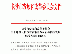 據(jù)長沙市發(fā)展改革委官網(wǎng),近日,《長沙市新能源及可再生能源發(fā)展保障方案》正式發(fā)布施行!斗桨浮凡渴鹆耸畟(gè)方面的重點(diǎn)任務(wù),不少措施著力破解新能源開發(fā)利用過程中堵點(diǎn)、痛點(diǎn),切實(shí)保障長沙新能源及可再生能源的有序建設(shè),助力實(shí)現(xiàn)“雙碳”目標(biāo)。