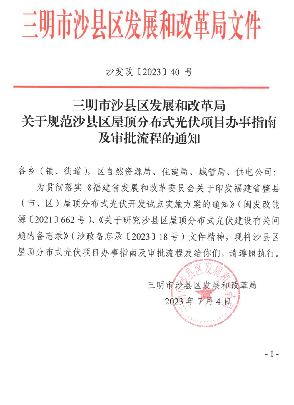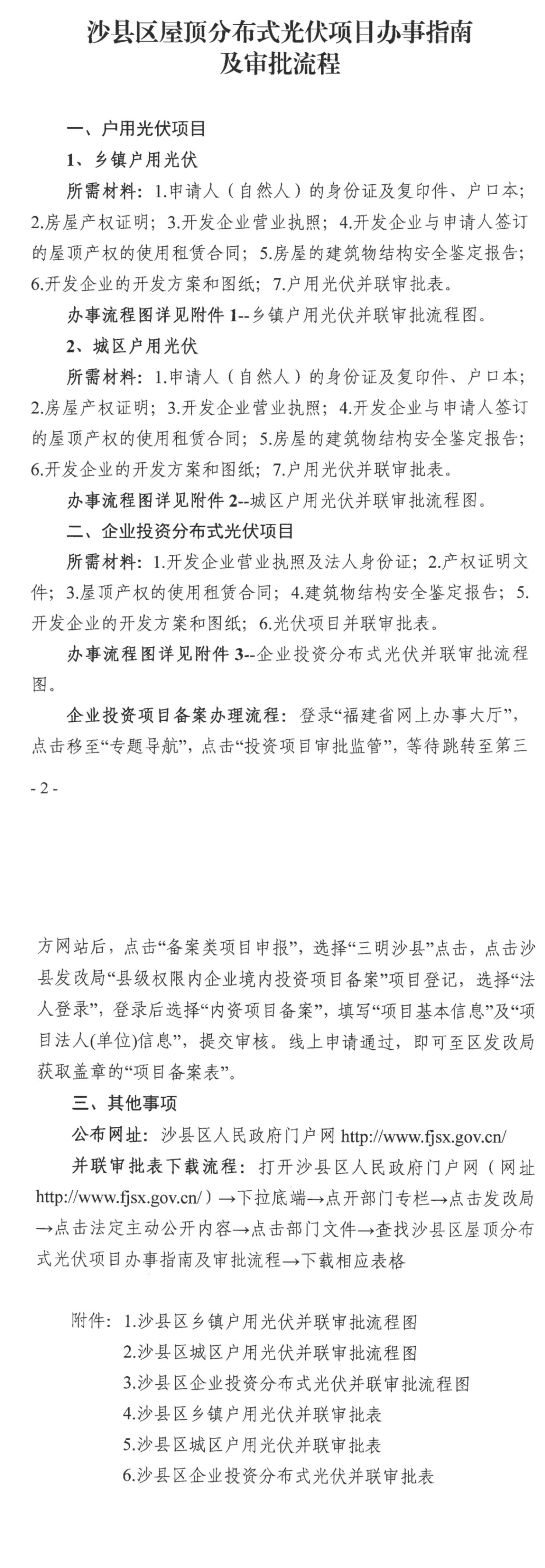 三明市沙縣區(qū)發(fā)布區(qū)屋頂分布式光伏項目辦事指南及審批流程