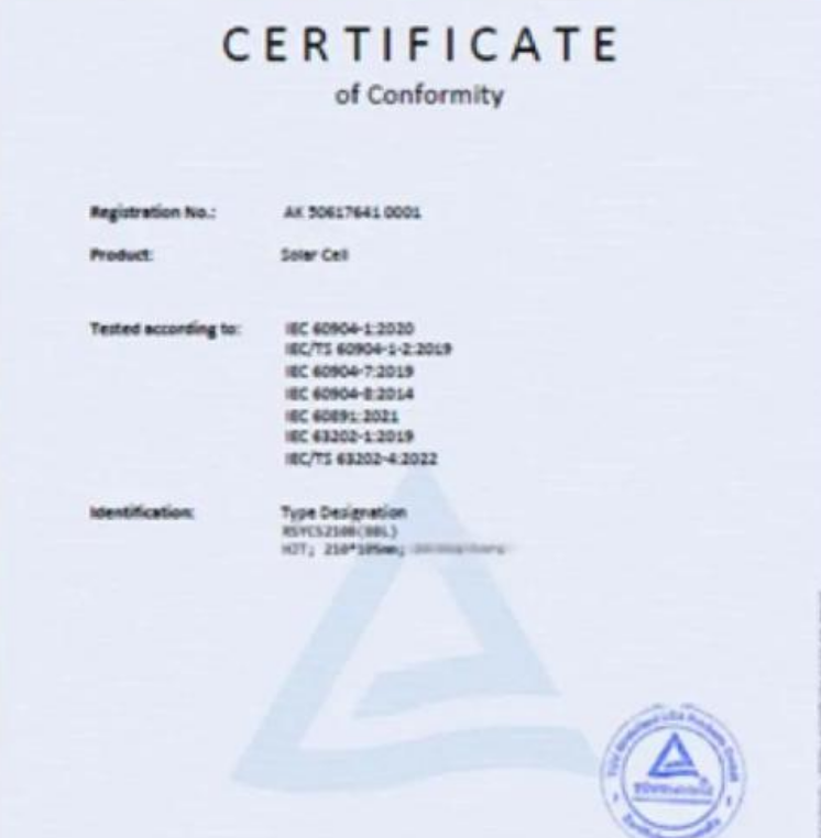 TÜV萊茵針對(duì)東方日升HJT伏曦電池片進(jìn)行了基于國(guó)際電工委員會(huì)頒布的IEC 60904-1:2020、IEC/TS 60904-1-2:2019、IEC 60904-7:2019、IEC 60904-8:2014、IEC 60891:2021、IEC 63202-1:2019和IEC/TS 63202-4:2022技術(shù)標(biāo)準(zhǔn)測(cè)試,在整個(gè)測(cè)試周期中,該產(chǎn)品表現(xiàn)優(yōu)異,順利通過(guò)測(cè)試并獲得認(rèn)證。