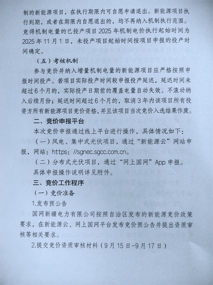 9月10日,新能源云平臺發(fā)布新疆自治區(qū)2025年度增量新能源項目機制電價競價預(yù)公告,公告顯示,本次組織批次為2025年6月1日至2025年12月31日期間已投產(chǎn)和計劃投產(chǎn)且未納入過機制電價執(zhí)行范圍的新能源項目。