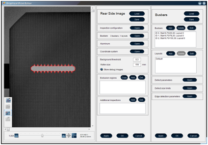 除此之外,還有一個(gè)靈活的 CAD 式編輯器為PERC檢測(cè)技術(shù)提供支持,以定義任意后側(cè)接觸面形狀,該編輯器與正面印刷圖案編輯器相似。這允許開(kāi)展個(gè)性化檢測(cè),并可最快速地在現(xiàn)場(chǎng)實(shí)施。因此,客戶可以避免對(duì)額外程序編制或 R&D 的投資。編輯器可保存指定圖案,允許將其在不同的產(chǎn)品線和制造地點(diǎn)之間進(jìn)行傳輸。除了印刷設(shè)計(jì)圖案之外,每個(gè)單獨(dú)的檢測(cè)任務(wù)連同其容錯(cuò)度和缺陷分類都是該方法的一部分。這確保了新產(chǎn)品線的輕松升級(jí),允許制造商旗下所有工廠及其遍布全球的子公司對(duì)某一電池類型都使用統(tǒng)一的質(zhì)量標(biāo)準(zhǔn)。