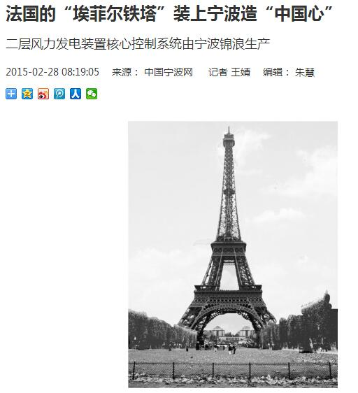 2015年全球各大媒體均報道了埃菲爾鐵塔新添風(fēng)力發(fā)電裝置的新聞,引起了人們的高度關(guān)注,這套發(fā)電裝置的核心部件----電控部分全部是由錦浪科技提供的。