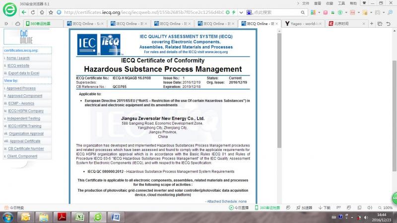 近日,SMA中國·兆伏愛索通過IEC認(rèn)證機(jī)構(gòu)的審核,順利獲得有害物質(zhì)過程管理體系IECQ QC080000證書;這標(biāo)志著SMA中國·兆伏愛索已全面具備環(huán)保產(chǎn)品的制造保障能力;至此SMA中國·兆伏愛索成為全球少數(shù)幾個通過該體系認(rèn)證的光伏逆變器企業(yè)之一。