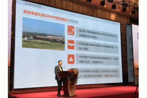 胡兵開門見山,以分享者的姿態(tài),將陽光電源在參與大同光伏“領(lǐng)跑者”基地建設(shè)近兩年來的努力和思考,向與會來賓和盤托出。胡兵介紹稱,陽光電源憑借二十年新能源發(fā)電領(lǐng)域的技術(shù)積累和創(chuàng)新能力,將直流1500V光伏技術(shù)、跟蹤系統(tǒng)技術(shù)、生態(tài)修復(fù)技術(shù)等前沿創(chuàng)新成果,充分展示和運(yùn)用在“領(lǐng)跑者”基地項(xiàng)目建設(shè)中。