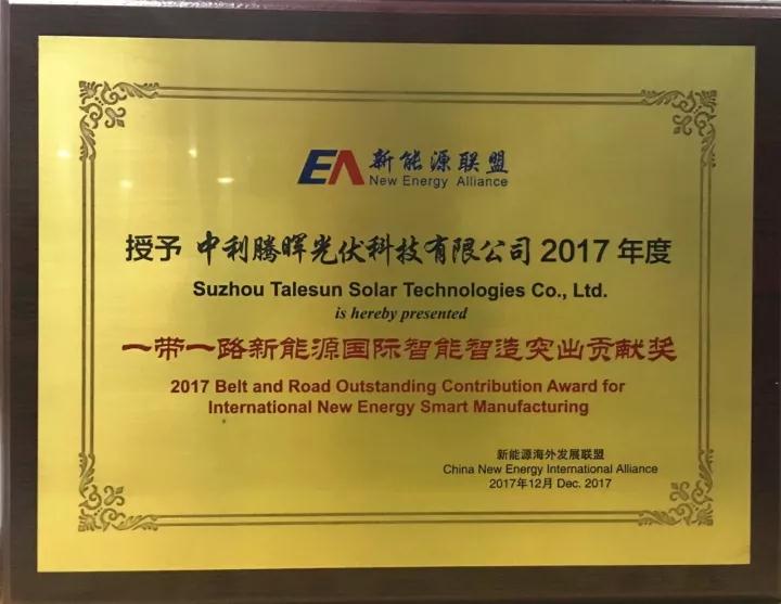 12月5日,以“新時(shí)代、新能源、新發(fā)展”為主題的2017中國(guó)(蘇州)新能源國(guó)際領(lǐng)跑者大會(huì)在蘇州召開,本屆大會(huì)由中國(guó)新能源海外發(fā)展聯(lián)盟、上海電力學(xué)院聯(lián)合主辦。會(huì)議期間,大會(huì)組委會(huì)發(fā)布了“2017 一帶一路新能源國(guó)際發(fā)展突出貢獻(xiàn)獎(jiǎng)”及系列獎(jiǎng)別評(píng)選結(jié)果,蘇州騰暉光伏技術(shù)有限公司(以下簡(jiǎn)稱“騰暉光伏”)榮獲“2017一帶一路新能
