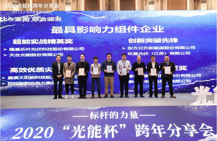 3月3日,2020年度“光能杯”分享會暨頒獎典禮在蘇州隆重舉行,東方日升新能源股份有限公司(簡稱“東方日升”)擷取了“年度光伏創(chuàng)新大獎”,以及由索比光伏網和鑒衡認證聯(lián)合頒發(fā)的“最具影響力光伏組件企業(yè)——創(chuàng)新突破先鋒獎”,企業(yè)實力再獲行業(yè)認可。