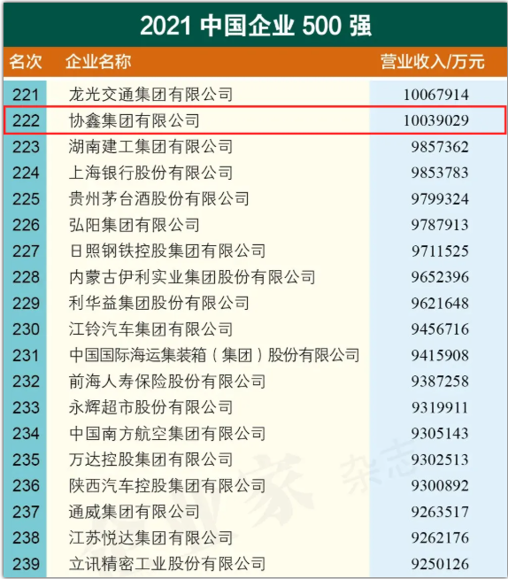 9月25日,2021中國(guó)企業(yè)500強(qiáng)、中國(guó)民營(yíng)企業(yè)500強(qiáng)系列榜單分別在吉林長(zhǎng)春、湖南長(zhǎng)沙同時(shí)發(fā)布。協(xié)鑫集團(tuán)繼續(xù)躋身千億俱樂(lè)部,位居2021中國(guó)企業(yè)500強(qiáng)綠色能源產(chǎn)業(yè)榜首,入列中國(guó)企業(yè)500強(qiáng)第222位、中國(guó)制造業(yè)企業(yè)500強(qiáng)第97位、戰(zhàn)略性新興產(chǎn)業(yè)領(lǐng)軍企業(yè)100強(qiáng)第31位、中國(guó)跨國(guó)公司100大及跨國(guó)指數(shù)第72位;中國(guó)民營(yíng)企業(yè)500強(qiáng)第78位、