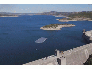 目前,這種混合型浮動太陽能/水電系統(tǒng)只在一個(gè)地方安裝過,是葡萄牙拉巴岡河大壩的一個(gè)試點(diǎn)項(xiàng)目。它由840塊太陽能電池板組成,占地2500平方米(27000平方英尺),估計(jì)能源生產(chǎn)量為300兆瓦時(shí)。能源供應(yīng)商EDP公司正計(jì)劃在這個(gè)試點(diǎn)項(xiàng)目的基礎(chǔ)上,在葡萄牙最大的儲能設(shè)施之一的Alqueva水電站擴(kuò)建一個(gè)11000塊面板的浮動光伏系統(tǒng)。