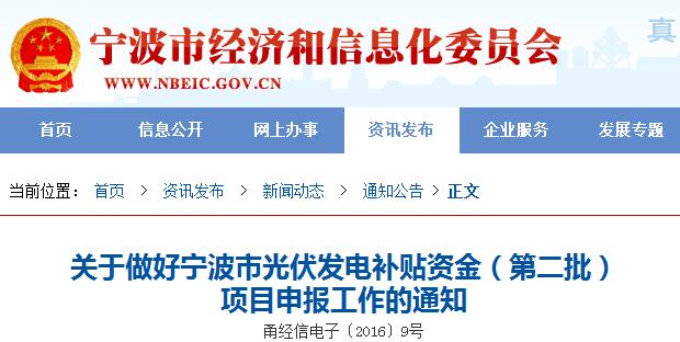 寧波市光伏發(fā)電補(bǔ)貼資金(第二批)項(xiàng)目申報工作