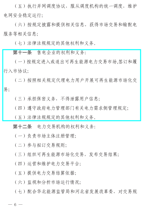 華北能源監(jiān)管局、河北省發(fā)改委日前聯(lián)合印發(fā)了《京津唐電網(wǎng)冀北(張家口可再生能源示范區(qū))可再生能源市場化交易規(guī)則(試行)》特急文件。規(guī)則中所稱可再生能源市場化交易,主要是指準入的電力用戶與并網(wǎng)可再生能源發(fā)電企業(yè),對保障性收購年利用小時數(shù)以外的電量,通過掛牌、協(xié)商、競價等市場化交易方式進行的中長期電量交易。