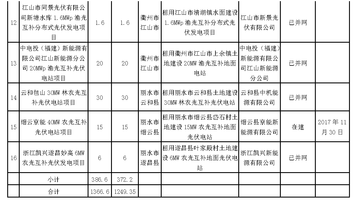 2016年度全省普通地面光伏電站建設(shè)計劃調(diào)整表