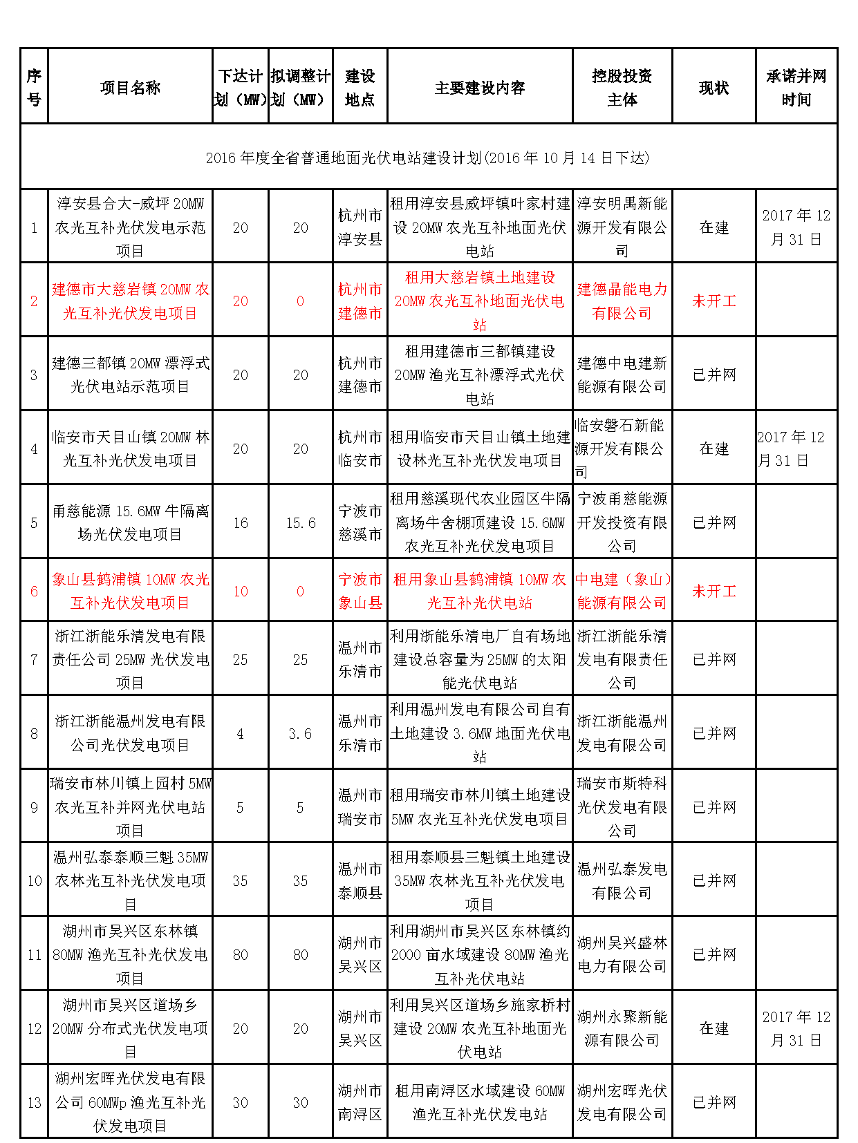 1、調(diào)整標(biāo)準(zhǔn)。2017年8月31日前開工建設(shè)的項(xiàng)目保留計劃;2017年8月31日前未開工的項(xiàng)目取消計劃;已開工無法完整建設(shè)的項(xiàng)目削減計劃(詳見附件1)。請各市發(fā)改委認(rèn)真核對后提出書面確認(rèn)意見,其中已并網(wǎng)項(xiàng)目需附電力公司出具的并網(wǎng)驗(yàn)收單。