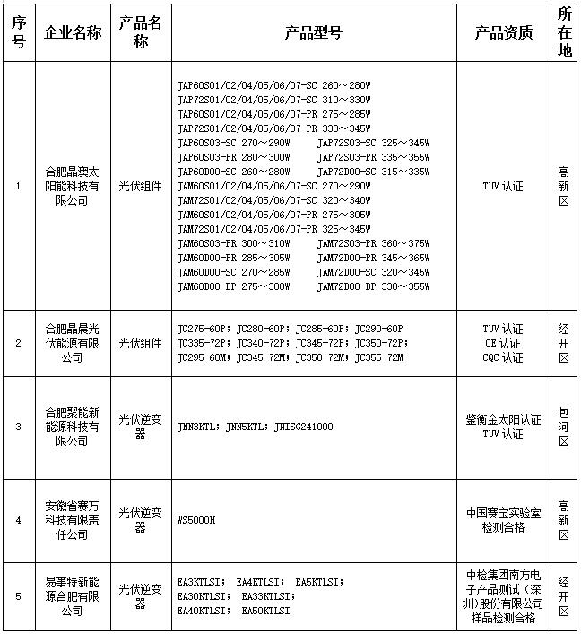 《2017年合肥市光伏產品推廣目錄(第二批)》