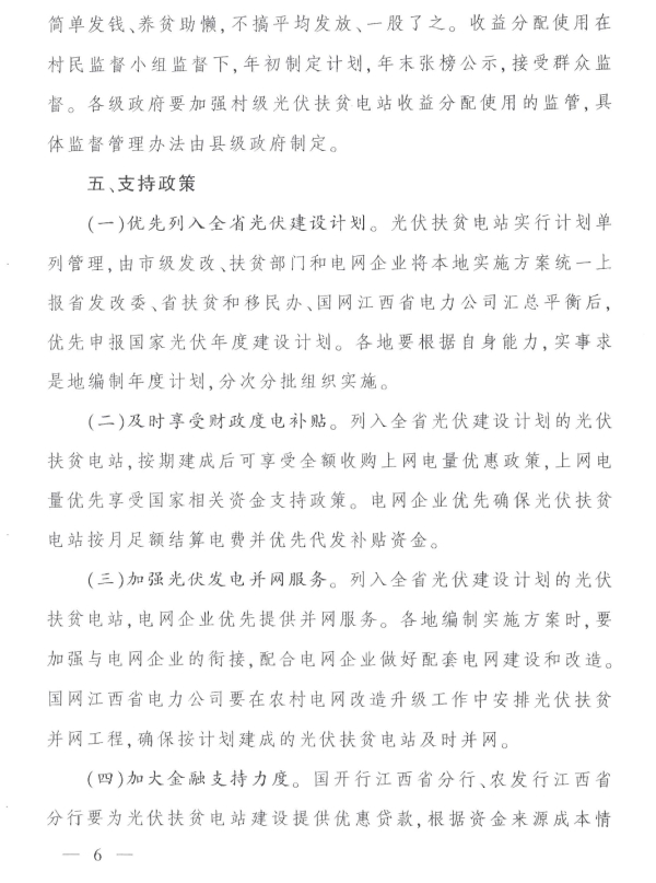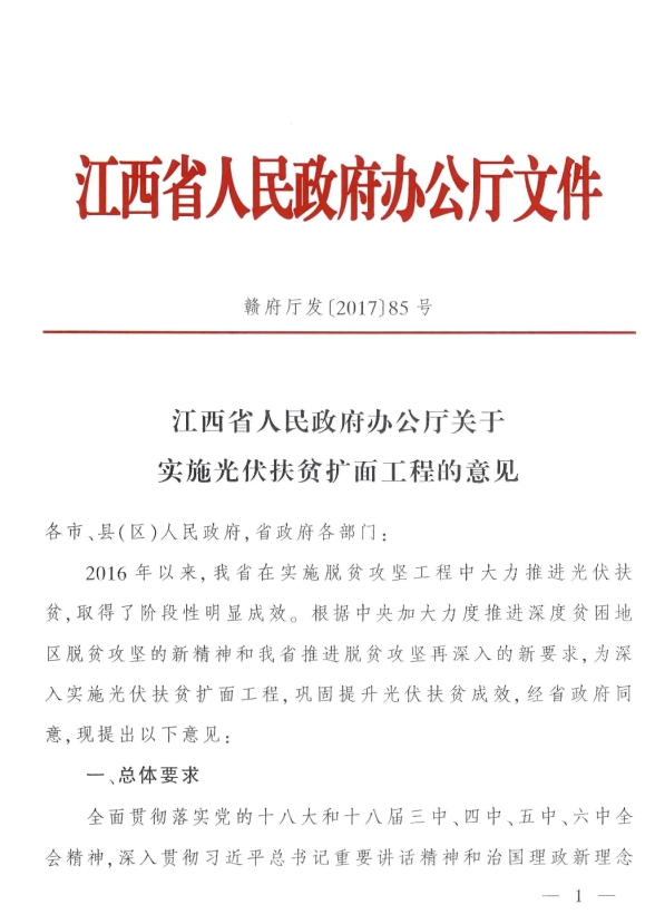 為進(jìn)一步發(fā)揮光伏發(fā)電產(chǎn)業(yè)優(yōu)勢(shì)、增加村集體經(jīng)濟(jì)來源、破解省級(jí)貧困村和深度貧困地區(qū)產(chǎn)業(yè)匱乏和村集體經(jīng)濟(jì)薄弱等難題,江西省委、省政府明確提出實(shí)施光伏扶貧擴(kuò)面工程。為推進(jìn)光伏扶貧擴(kuò)面工程的順利實(shí)施,省發(fā)改委起草了《江西省人民政府辦公廳關(guān)于實(shí)施光伏扶貧擴(kuò)面工程的意見》(以下簡稱《意見》),并以省人民政府
