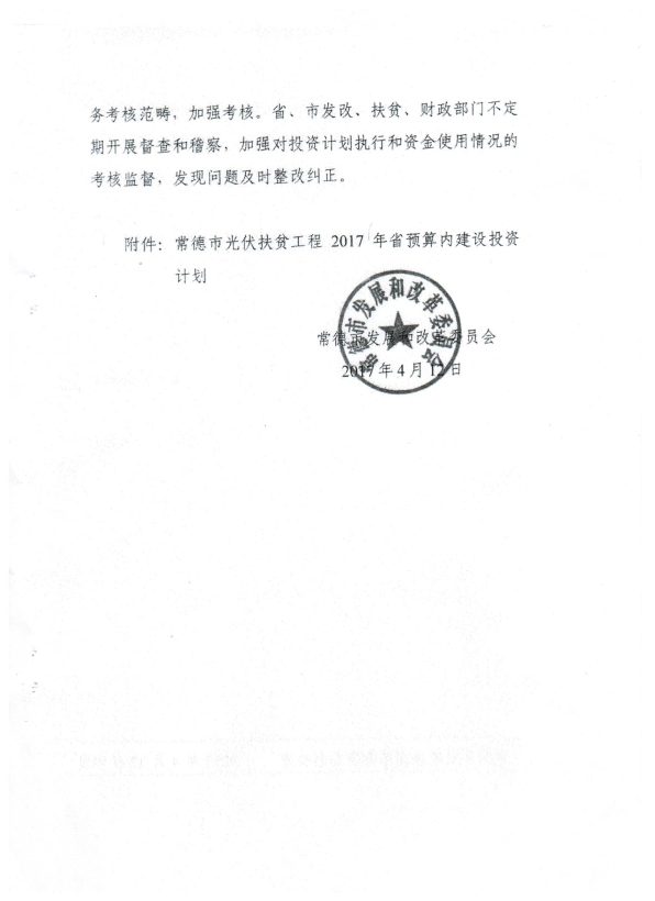 關(guān)于分解下達(dá)常德市光伏扶貧工程2017年省預(yù)算內(nèi)基本建設(shè)投資計(jì)劃的通知