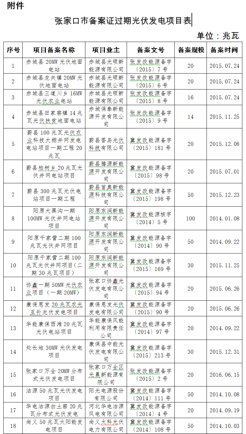 附件:張家口市備案證過期光伏發(fā)電項目表