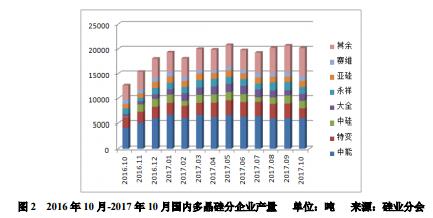 硅業(yè)分會(huì)統(tǒng)計(jì),截止2017年10月底,國(guó)內(nèi)在產(chǎn)多晶硅企業(yè)21家(包括正常檢修企業(yè)),有效產(chǎn)能共計(jì)26.7萬噸/年,產(chǎn)能在逐步提升,9-10月份產(chǎn)能增量主要來自個(gè)別多晶硅企業(yè)檢修技改后產(chǎn)出的部分提升。根據(jù)目前在建企業(yè)擴(kuò)產(chǎn)進(jìn)度來看,截止2017年底,國(guó)內(nèi)多晶硅產(chǎn)能將達(dá)到30萬噸/年左右,到2018年,樂觀估計(jì)國(guó)內(nèi)多晶硅產(chǎn)能將達(dá)到42萬噸/年。